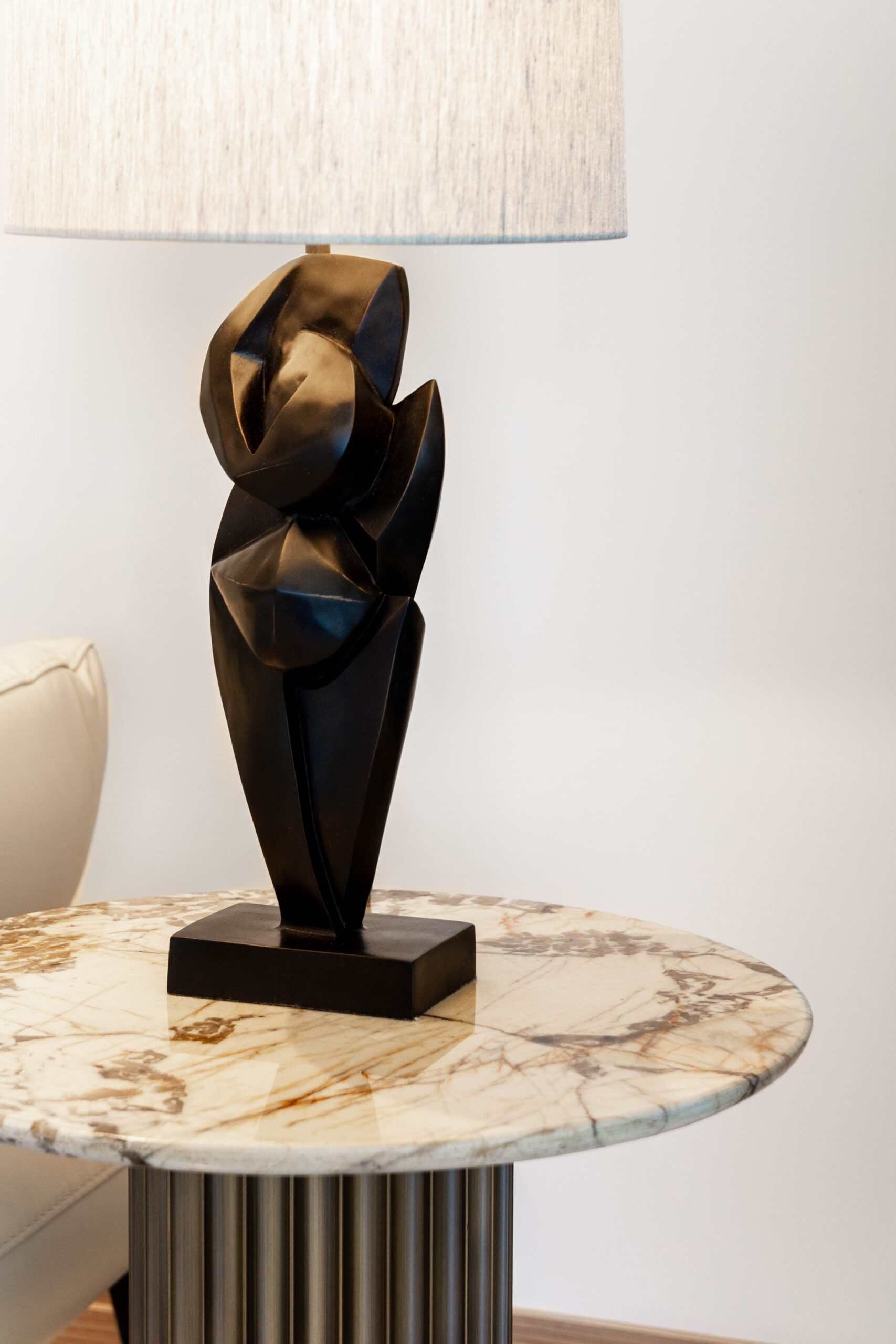 The client’s request was clear: a chic, warm, and welcoming home that would reflect a sophisticated style. This vision was achieved through the use of smooth materials and a soft color palette. The result is a luxury interior design project combining warm beige, pink, and bronze tones with refined finishes. These include marble, dark emperador travertine, and burnished bronze details, paired with silk fabrics and fine sand-colored leathers.