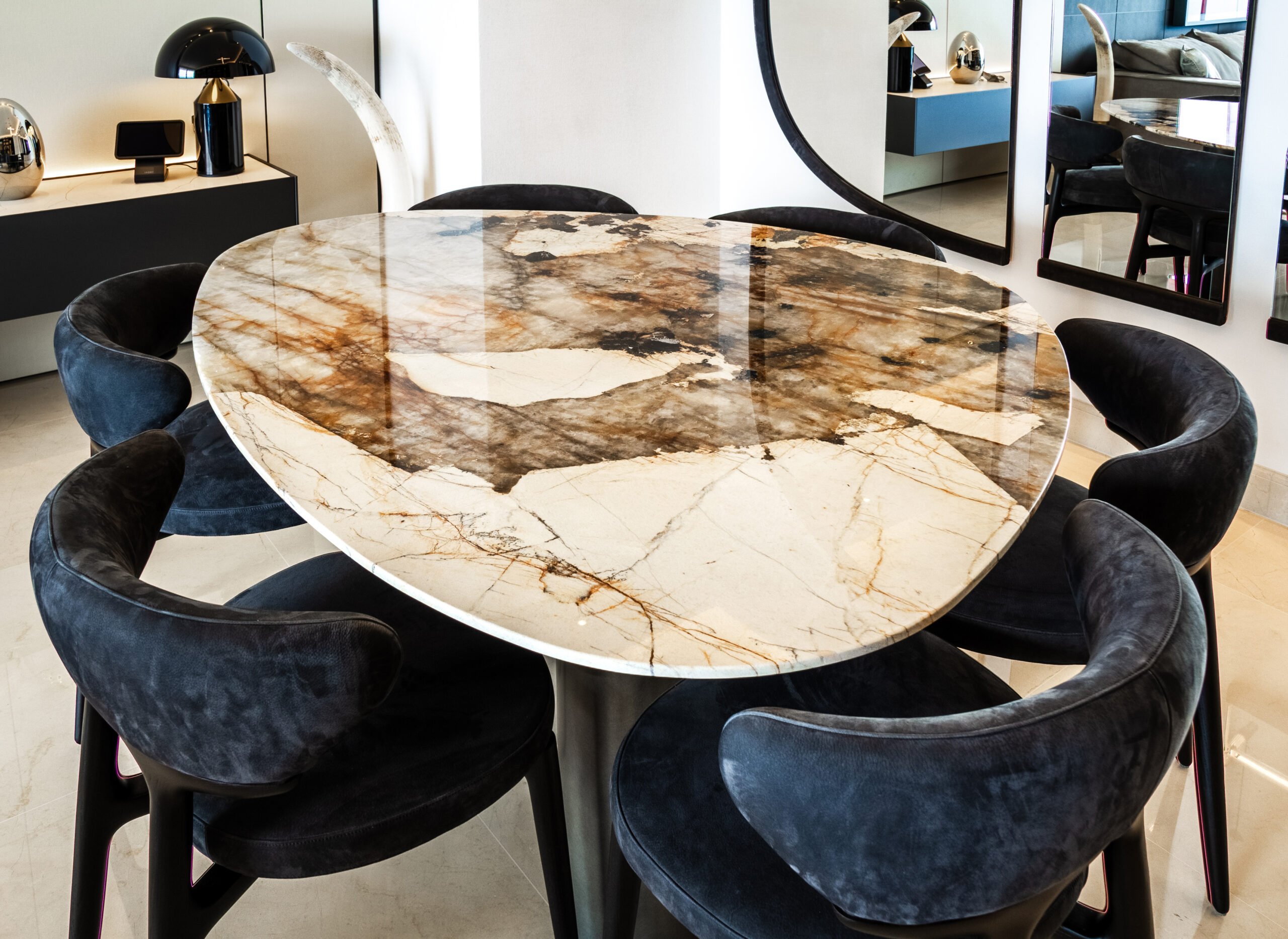 L’approccio di Spazio Italiano è stato quello di combinare matericità preziose e armonia cromatica, con un linguaggio che alterna calore e impatto scenografico. Ogni ambiente è stato pensato come un’esperienza sensoriale, dove l’eleganza del design italiano incontra il lifestyle internazionale di Monte Carlo.